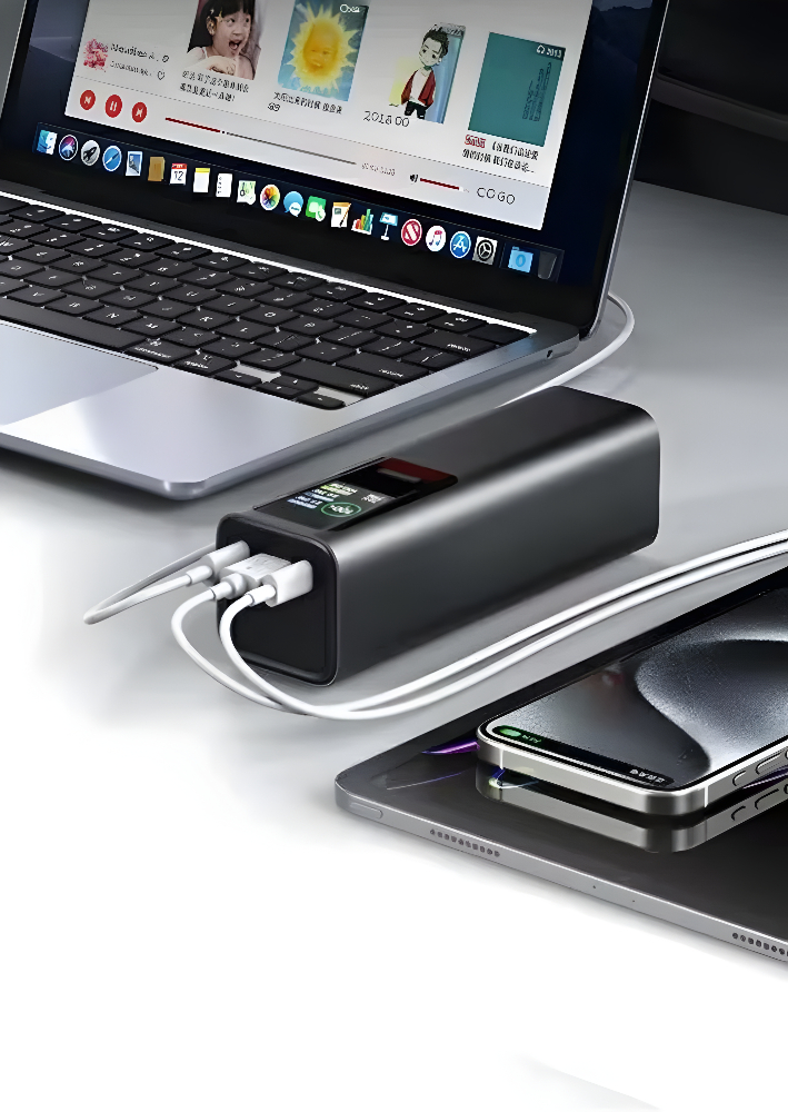 Ez a nagy teljesítményű, színes kijelzős power bank igazi erőmű a zsebedben. Az akár 100W-os USB-C kimenetnek köszönhetően nemcsak okostelefonodat, hanem laptopodat, táblagépedet vagy egyéb nagyobb energiaigényű eszközeidet is villámgyorsan feltöltheted. Két USB-C port egyidejű használatakor akár 160W összteljesítményre is képes (100W + 60W), így egyszerre több készüléket is kompromisszum nélkül tölthetsz.